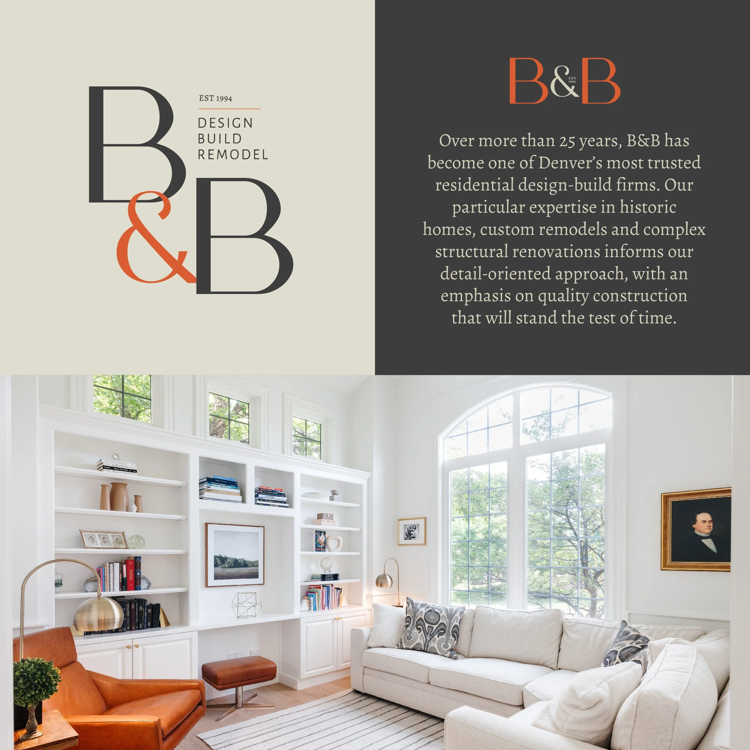 After 25+ years of business, design-build firm Basements & Beyond had outgrown its original business model. Given their specialization in historic homes and complex structural remodels, the company’s current online presence wasn’t attracting their ideal clients, and they were debating whether (or how) to change their name. In collaboration with owner Wes Cooper, we spearheaded a comprehensive rebrand as “B&B,” including a refined visual identity and compelling copywriting that differentiates the company’s approach in a crowded market. Soon to come—a brand new website, including a more curated portfolio of featured projects!